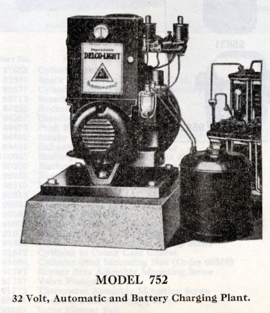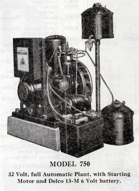 110 volt DC current used on large farms, schools, churches and hotels. This four cylinder, 4-stroke, air cooled engine-generator weighed 631 pounds.